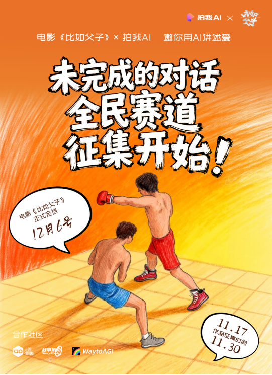 围绕电影“AI与爱”情感延续的主题,《比如父子》与拍我AI联合推出“未完成的对话”AI 记忆修复计划,并在社交平台发起 #用AI与你重逢 AIGC共创活动——邀请公众用 AI 讲述爱、修复记忆、完成未尽之言。
