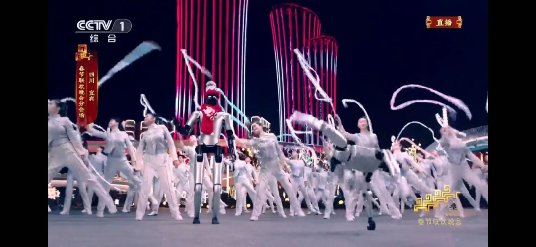 《武BOT》中,宇树科技再次大秀肌肉,G1机器人与真人演员齐登台,用上长剑、双节棍、长棍展示多重“武功”。
